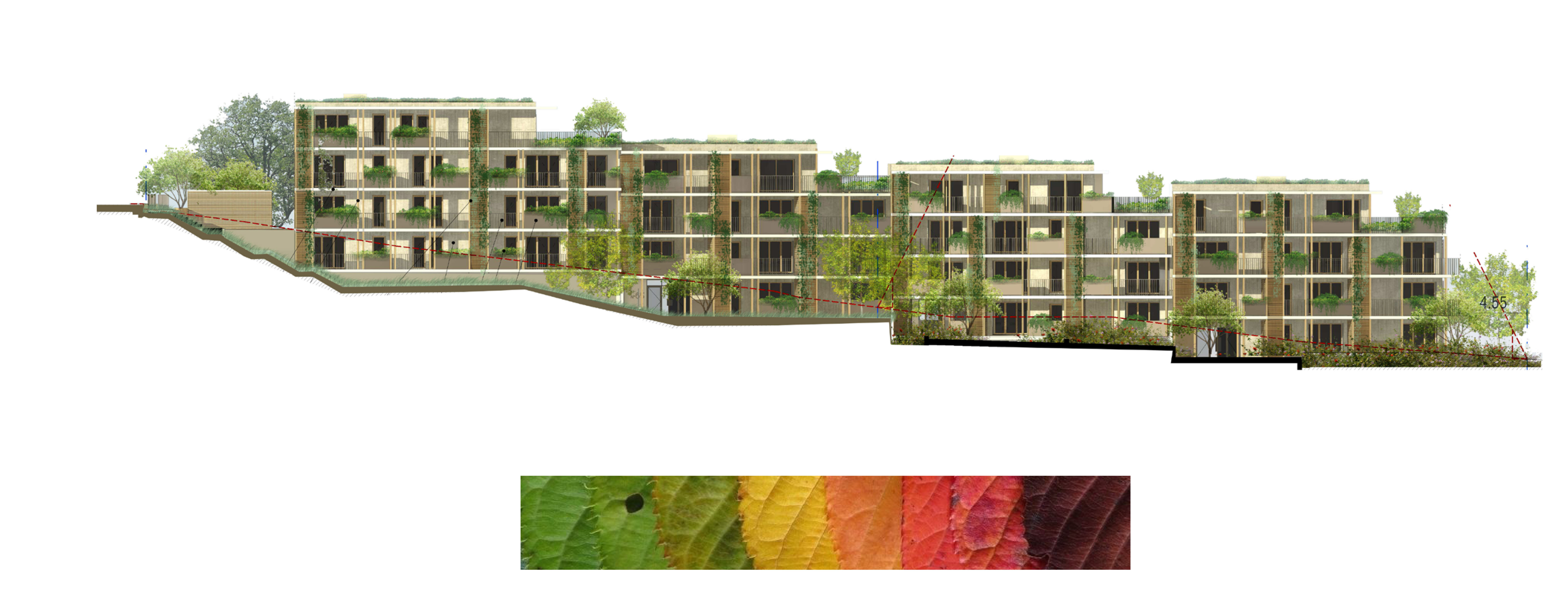 Les façades saisonnières, qui évoluent au fil de l’année, accueillent une profusion de verdure intégrée. Les balcons se transforment en jardins suspendus, où les plantes suivent le rythme des saisons. Cette façade vivante devient un repère, participant à la biodiversité locale.