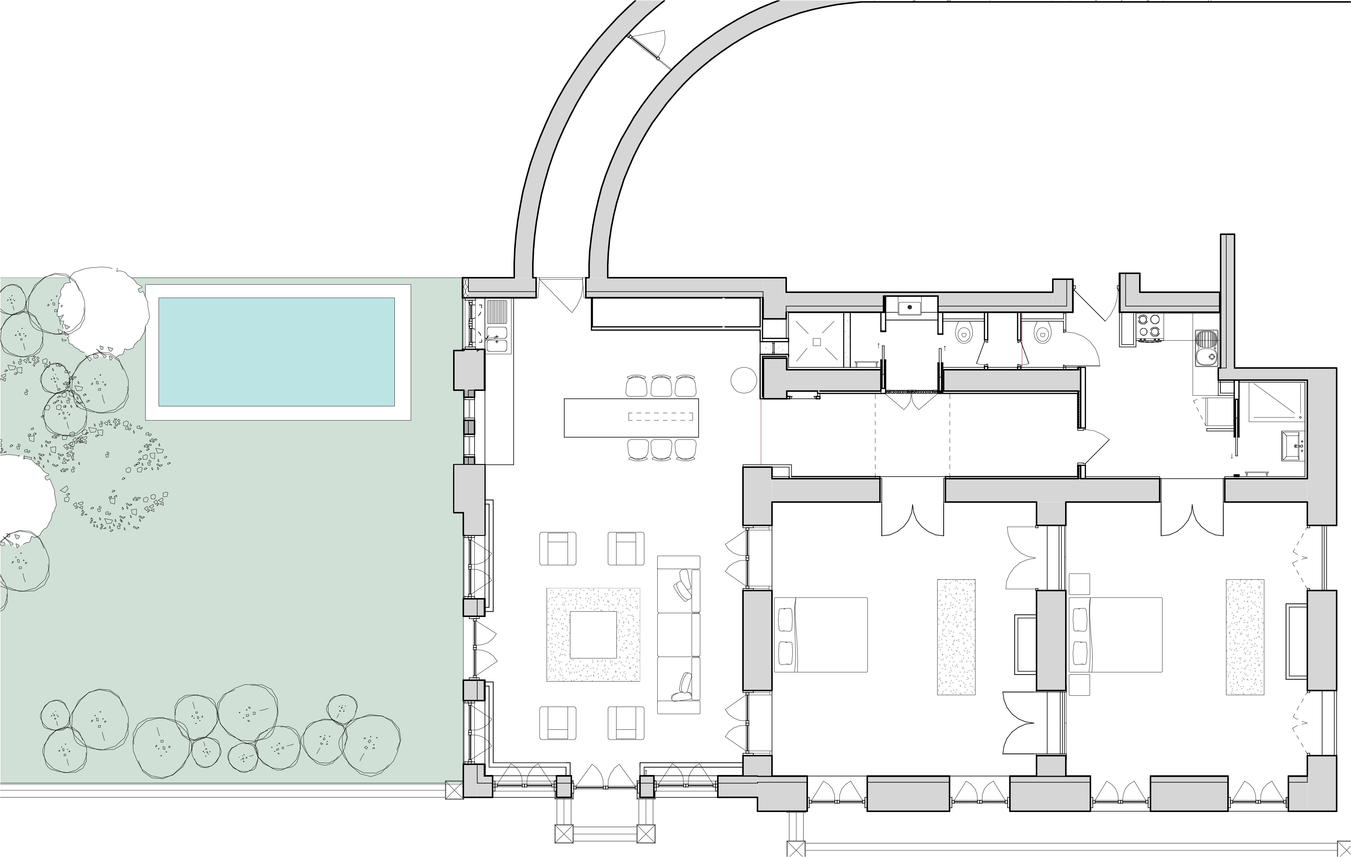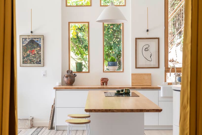 Livraison : 2023 Rénovation d’une maison ancienne Cette rénovation d’une maison ancienne située dans un contexte rural français révèle une approche sensible et respectueuse du bâti existant. L’intervention met en lumière les qualités patrimoniales du lieu — sols en bois aux motifs géométriques complexes, fresques murales délicatement patinées — tout en intégrant des éléments contemporains avec subtilité. Les espaces ont été repensés afin d’apporter plus de fluidité dans la circulation et de favoriser la lumière naturelle. Les matériaux d’origine, tels que le parquet ancien et les enduits muraux, ont fait l’objet d’un travail minutieux de restauration. Le sol en bois, dont les motifs rythment la perception des pièces, devient un élément central de la composition. Des fresques murales, découvertes au fil du chantier, ont été préservées partiellement, dans un équilibre entre traces du passé et interventions contemporaines. Le choix a été fait de ne pas effacer les marques du temps, mais de les intégrer dans une narration architecturale plus large. L’ensemble du projet vise une cohérence douce entre héritage et usage, en s’appuyant sur la matérialité, la lumière, et la mémoire du lieu. Il s’agit moins de transformer que de révéler, en permettant à l’espace de retrouver sa force poétique et sa dimension habitée.