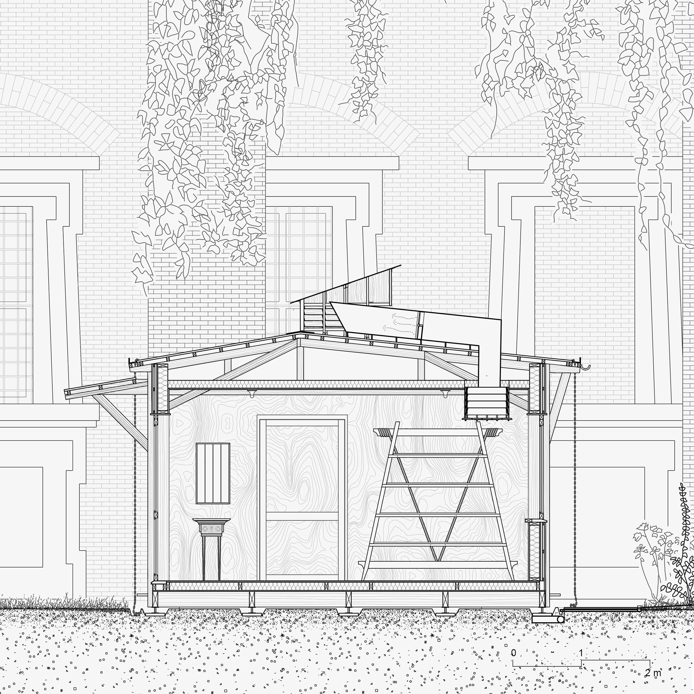 Situé dans les jardins historiques du Palais Farnèse, monument emblématique de la Renaissance italienne du XVIe siècle, siège de l’Ambassade de France en Italie, le Pavillon s’imprègne du caractère patrimonial des lieux mais le réactualise dans sa construction, à l’ère d’une architecture climatique. A la structure légère en bois, sans fondations lourdes pour préserver le site archéologique, le projet s’inspire de techniques constructives traditionnelles pour être le plus économe en énergie, tout en révélant la matière locale disponible : cheminée solaire s’érige en toiture pour ventiler naturellement l’espace dans un contexte de fortes chaleurs, tandis que deux murs de maçonnerie constituent les façades, ornementées à la manière du Spolia romain. Il ne s’agit alors plus de dépouiller les sites antiques de leurs vestiges mais de réemployer la matière historique stockée dans les caves du Palais, depuis plusieurs siècles. Ainsi commence une recherche urbaine débutée pendant une année de résidence à la Villa Médicis, autour des pierres délaissées suite aux travaux de rénovation des institutions, pour leur offrir une nouvelle vie et rendre visible une couche mémorielle bâtie de la ville. A la fois décoratifs et porteurs, les murs maçonnés du pavillon sont alors les témoins d’une architecture sensible à la matière qui est à portée de main : comment utiliser ces fragments symboliques sans les dénaturer ? De quelle manière préserver leur identité tout en les associant à une nouvelle architecture ? L’inventaire des pierres se complète avec la découverte de fragments archéologiques datant du 1er siècle à l'ère moderne, découverts pendant les travaux d'excavation, que l'on a choisi d'exposer sur les murs intérieurs du pavillon, avec l'autorisation de la Surintendance et l'aide des archéologues de l'Ecole Française de Rome, faisant de cet espace un petit musée des sols.