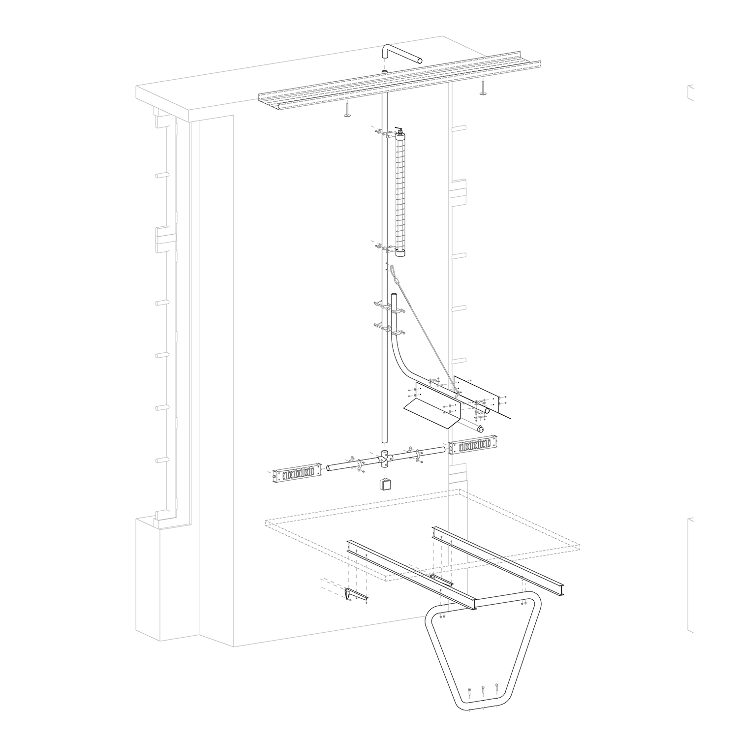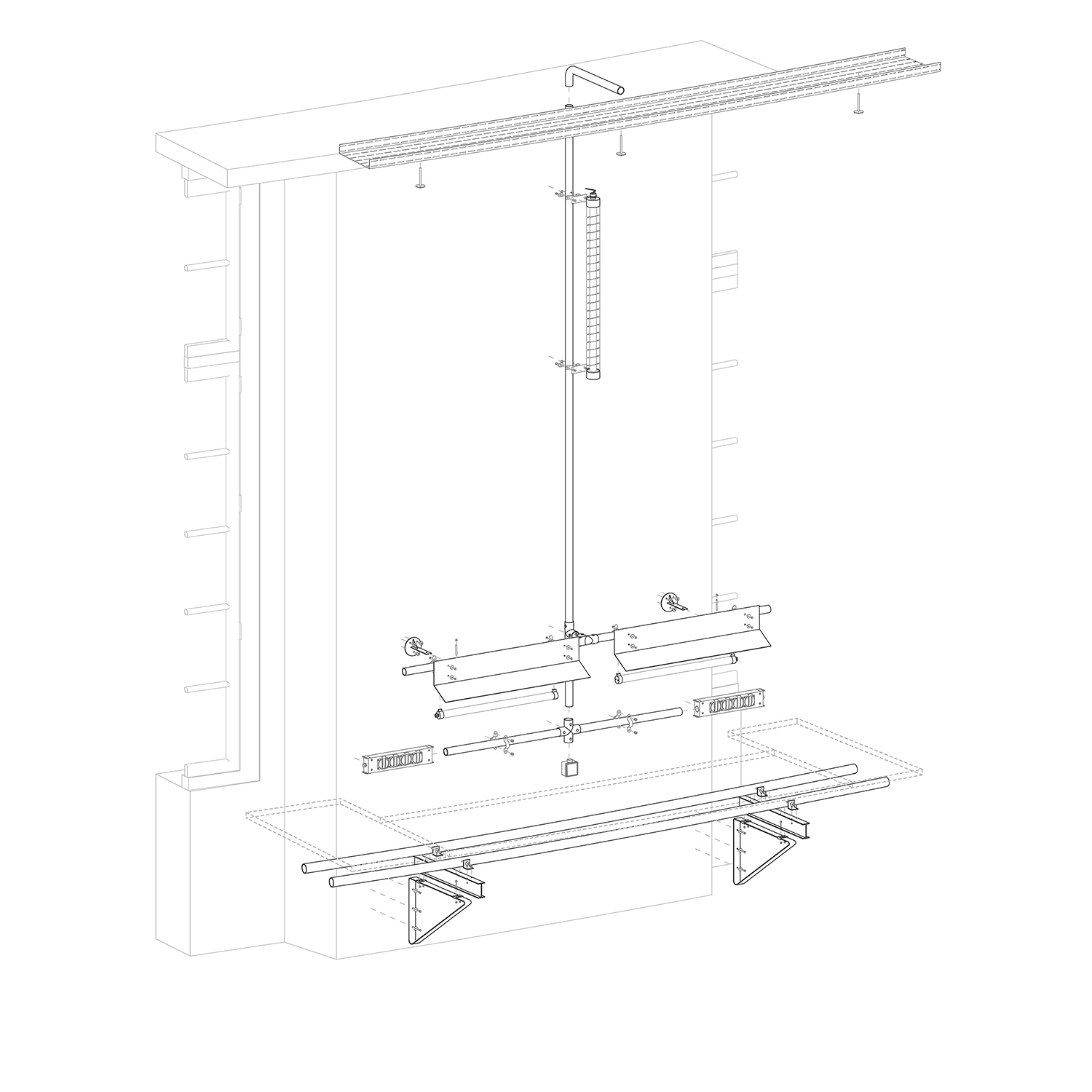 La rénovation tire parti des particularités de chaque espace, afin d’offrir une diversité des modes de travail et d’apprentissage (travail en groupe, individuel, sur ordinateur, maquettes, etc.), tout en favorisant les échanges entre étudiants. Deux des espaces, par leur configuration singulière, sont plus adaptés au travail solitaire ou à la réalisation de maquettes, tandis que le dernier atelier, par sa forme orthogonale, permet une variété de configurations grâce à ses tables mobiles et ses réseaux suspendus (expositions, présentations, etc.).Le mobilier est conçu sur mesure, par l’assemblage mécanique d’éléments standardisés et peu transformés. Les systèmes de fixation à l’existant sont pensés pour libérer et dégager efficacement les espaces, souvent encombrés lors des rendus de projet. Les matériaux bruts, comme l’acier galvanisé et le plastique recyclé, sont utilisés pour résonner avec l’histoire du lieu. La restauration des pierres et des enduits, datant du XVIIème siècle, affirme le dialogue et le contraste entre l’architecture historique et la nouvelle intervention.