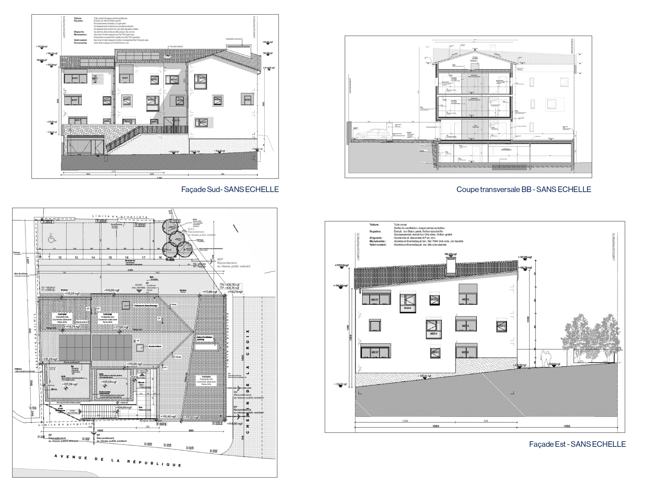 Ce socle permet une mise à l'écart de la façade Sud, s'ouvrant sur le grand paysage. Le projet en forme de L est en retrait de la parcelle d'origine offre un nouvel espace qui sera rétrocédé à la mairie. La création d'une placette solutionne un carrefour accidentogène et offre de nouvelles places de stationnements aux voisins.