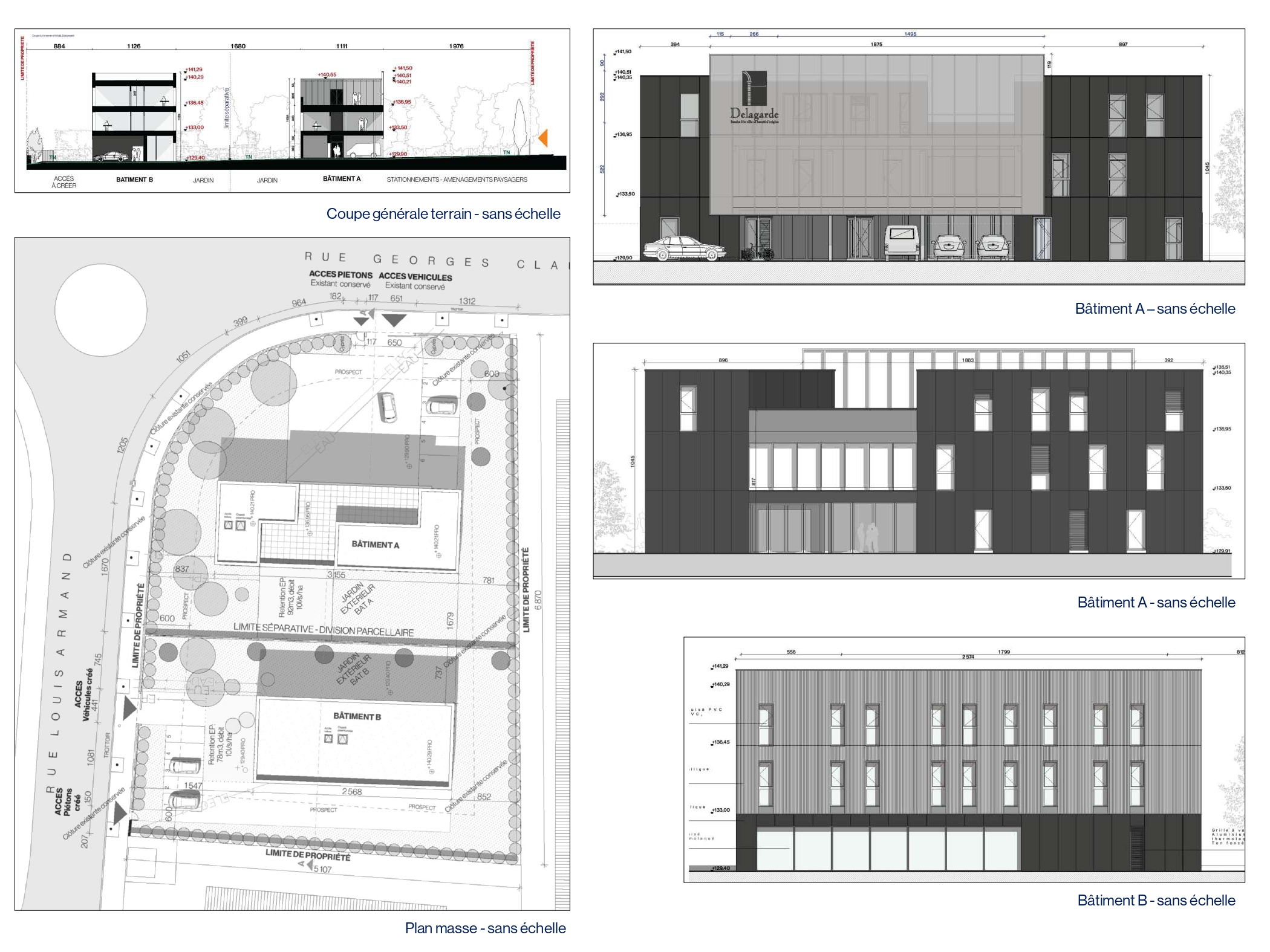Le projet concerne la construction neuve de deux bâtiments accueillant des bureaux ainsi qu’un logement de fonction de 80 m² situé en toiture. Le premier édifice, le bâtiment B, a été livré en amont dans le cadre d’un programme tertiaire locatif destiné à financer partiellement le bâtiment A, siège social de l’entreprise spécialisée dans la façade — et cœur du projet que nous souhaitons mettre en valeur.