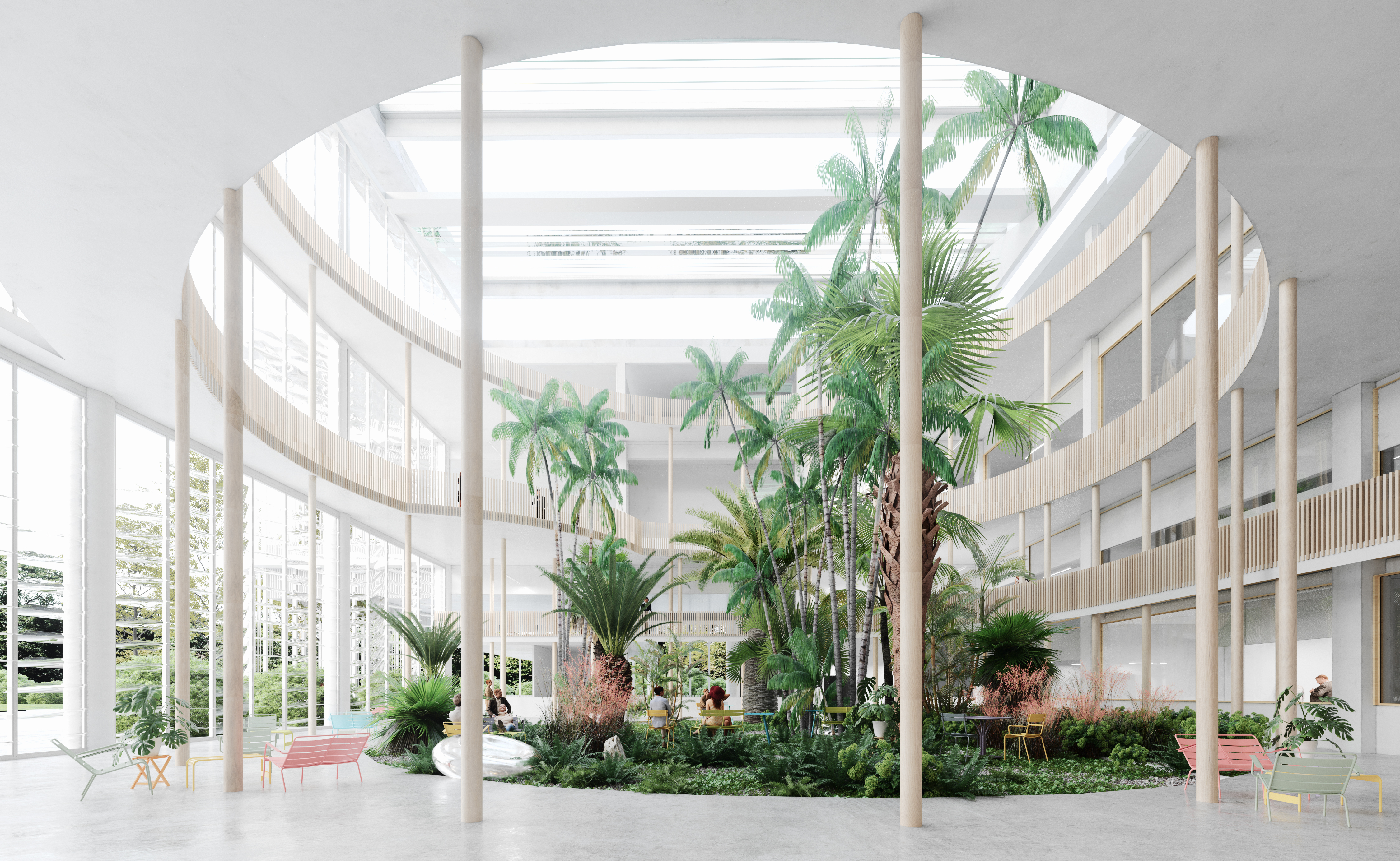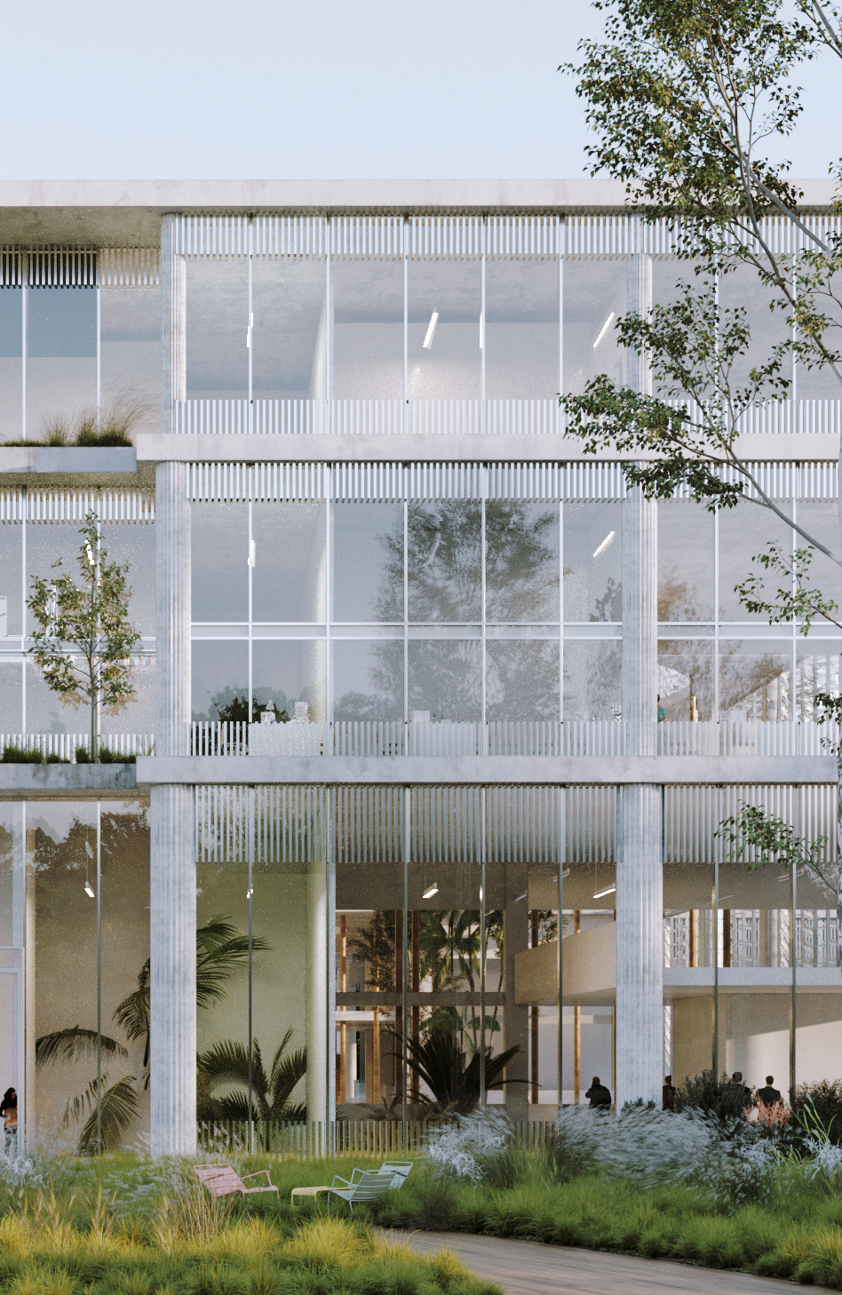 Par sa dimension environnementale, le projet incarne une architecture responsable. La végétation y joue un rôle essentiel, apportant fraîcheur, confort et respiration. Le bâtiment devient à la fois outil de recherche et cadre de vie, favorisant la créativité et l’émulation.