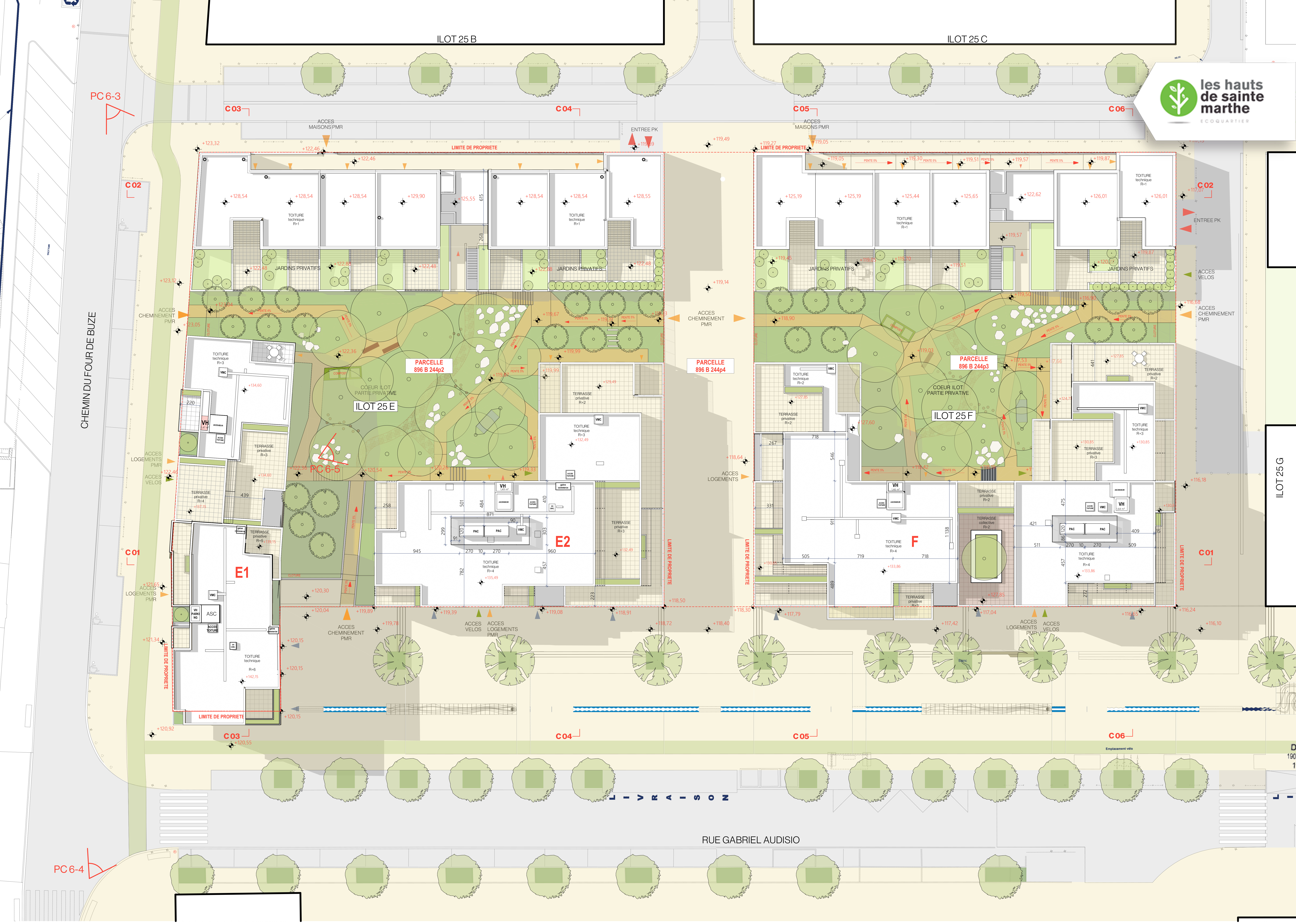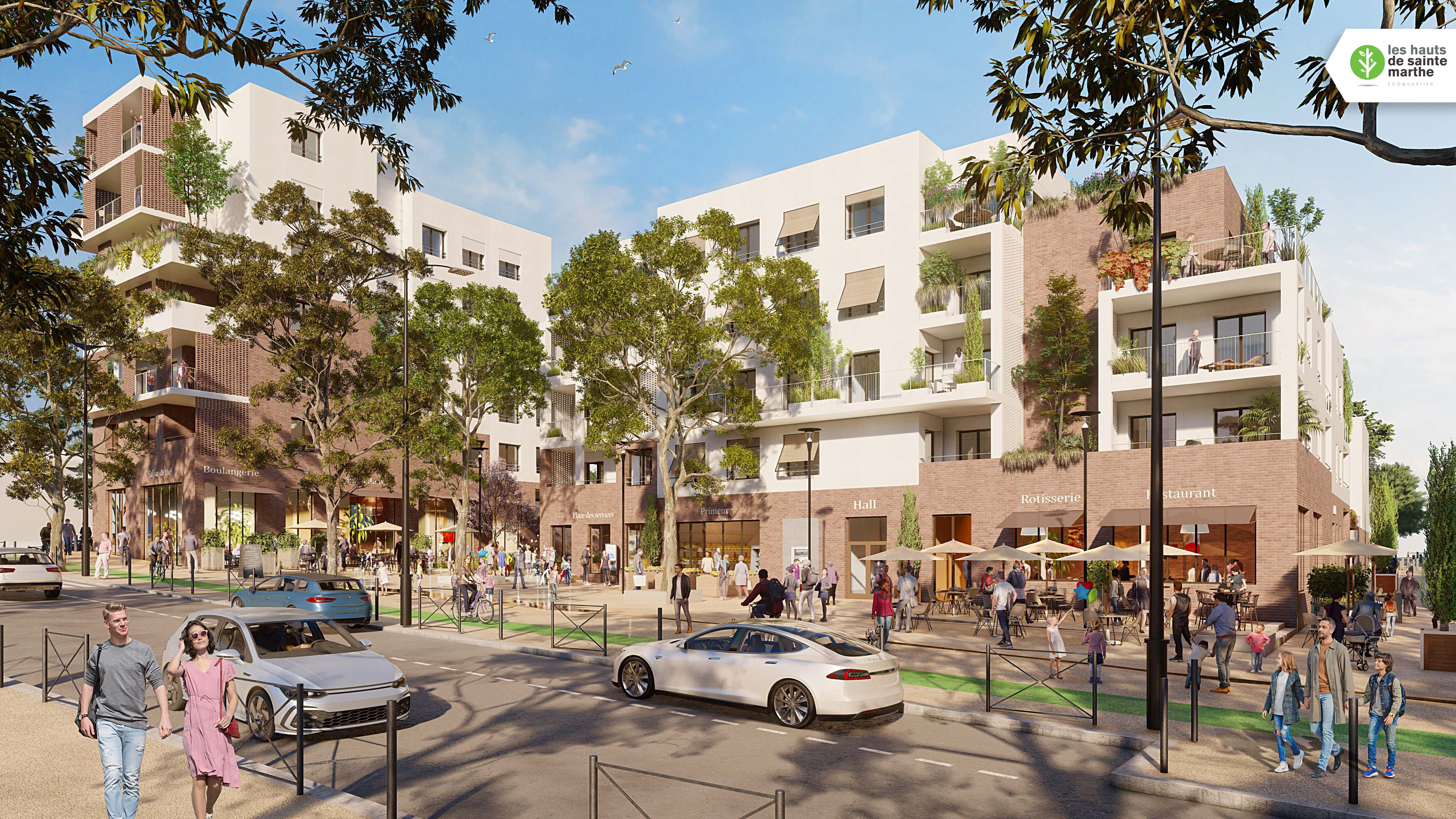 L’intégration urbaine du projet se traduit également par des rez-de-chaussée dédiés aux commerces et aux services, générant animation et convivialité, tout en contribuant à l’attractivité et à la cohésion du quartier. Cette approche illustre une volonté forte de créer un environnement durable, vivant et harmonieux, en parfaite adéquation avec la vision globale de l’Écoquartier.
