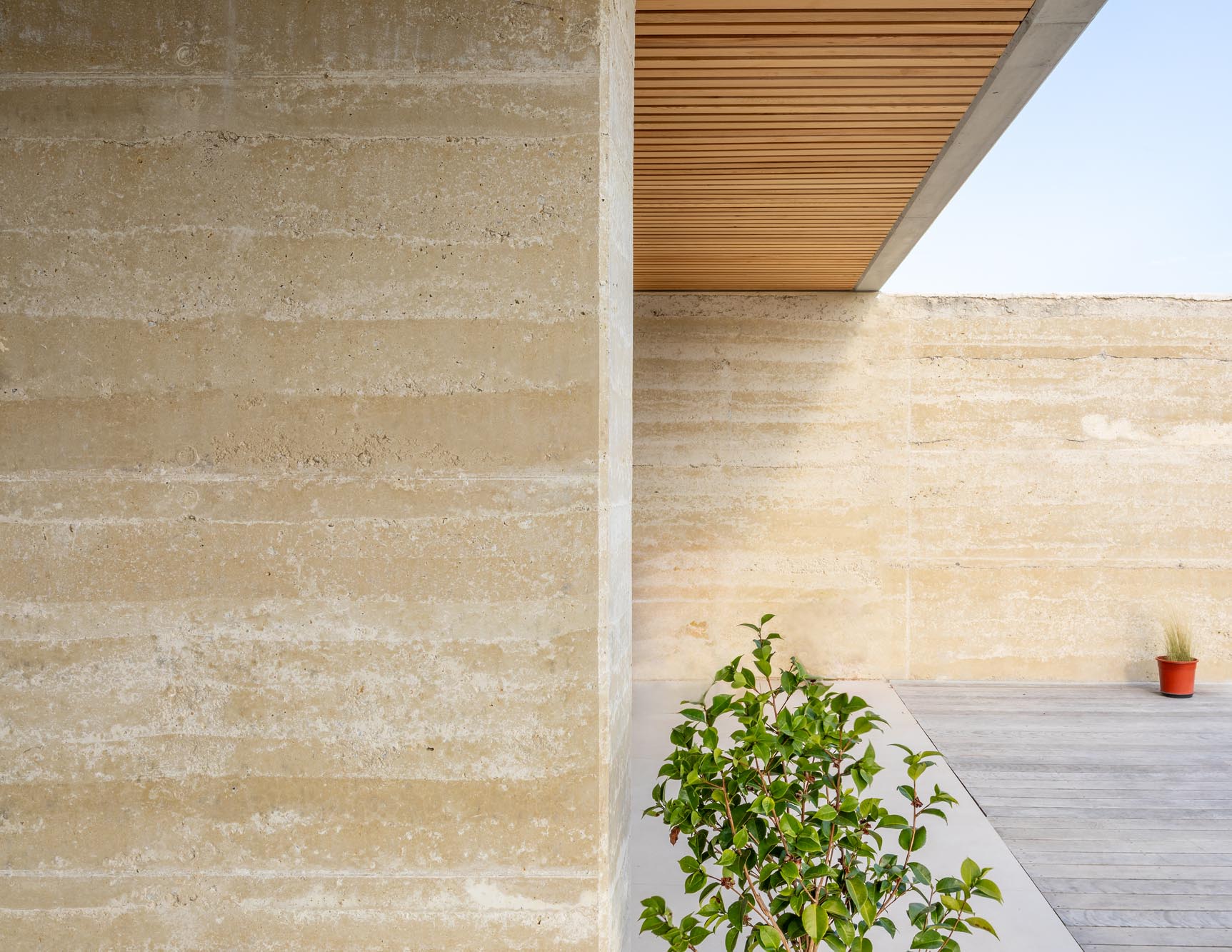 Caroline mène depuis 2017 des recherches sur la question du réemploi de la terre dans la construction et explore son usage contemporain. Elle a développé divers projets bioclimatiques en privilégiant les bétons de terre et pisés stabilisés peu consommateurs d’énergie et reconnus à haut confort de bien-être, actuellement plébiscités en France après de nombreux autres pays. L’agence a développé un béton dit « de site » / « de terre » présentant de grandes qualités au sein d'un projet expérimental pilote échelle 1 autour de la question du réemploi de la terre du site dans le batiment. La conception de projets à base de matériaux naturels, et le développement de techniques puisant des ressources naturelles disponibles sur le site ou à proximité, est devenue une évidence à la fois technique, climatique mais aussi sociale. Ce matériau a reçu en 2023 la mention spéciale procédé constructif des éditions Architecture Avivre, et est actuellement finaliste des trophées de la Construction (BatiActu / SMA). |